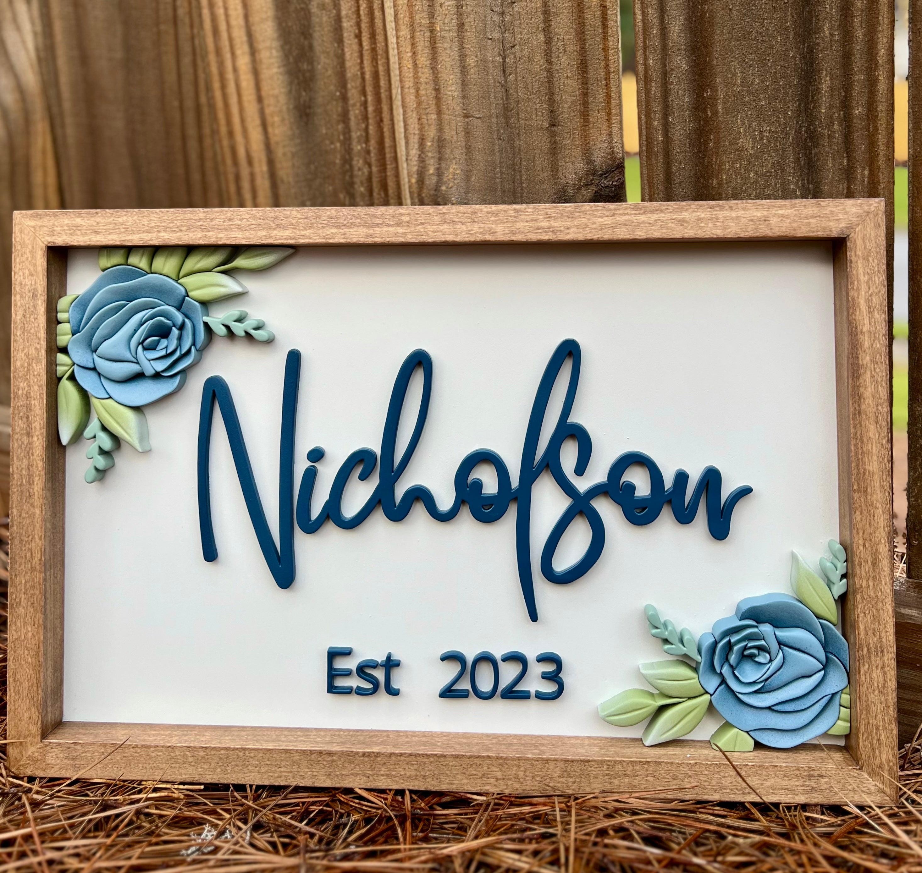 All of my signs are hand made from the backer to the frame and whatever design I'm working on. I do have a laser now which allows me to cut some parts of a design quicker and also allows for making cute seasonal items. I strive to do my best work on every project I am privileged to make!